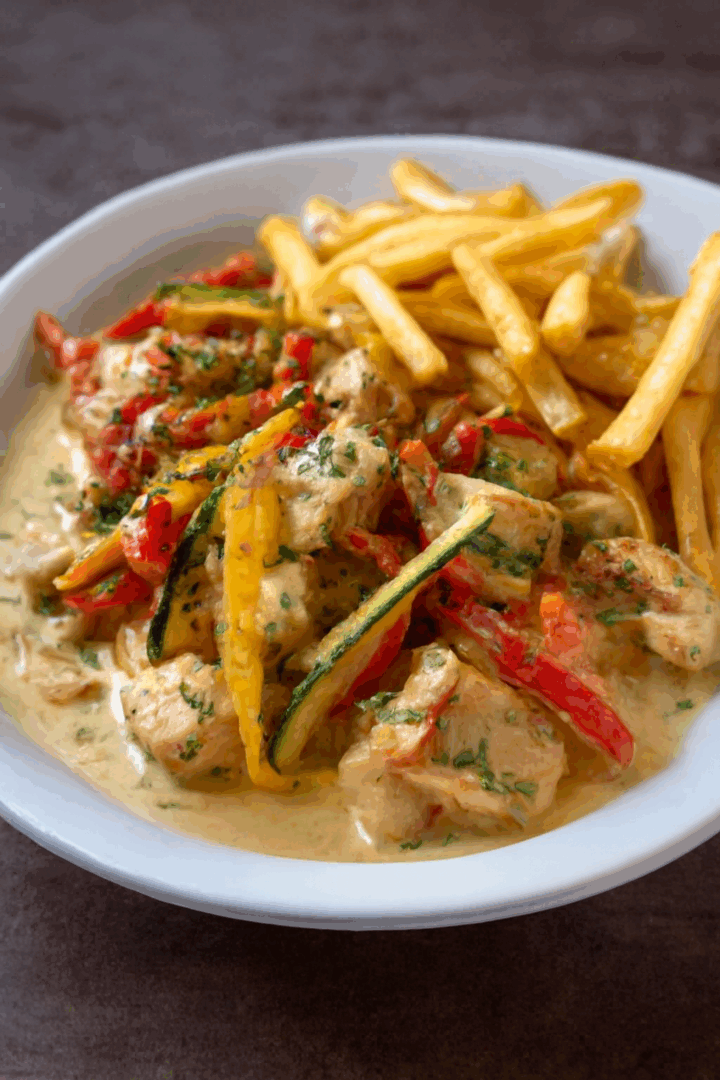 Danie najlepiej podać z frytkami jako dodatkiem.