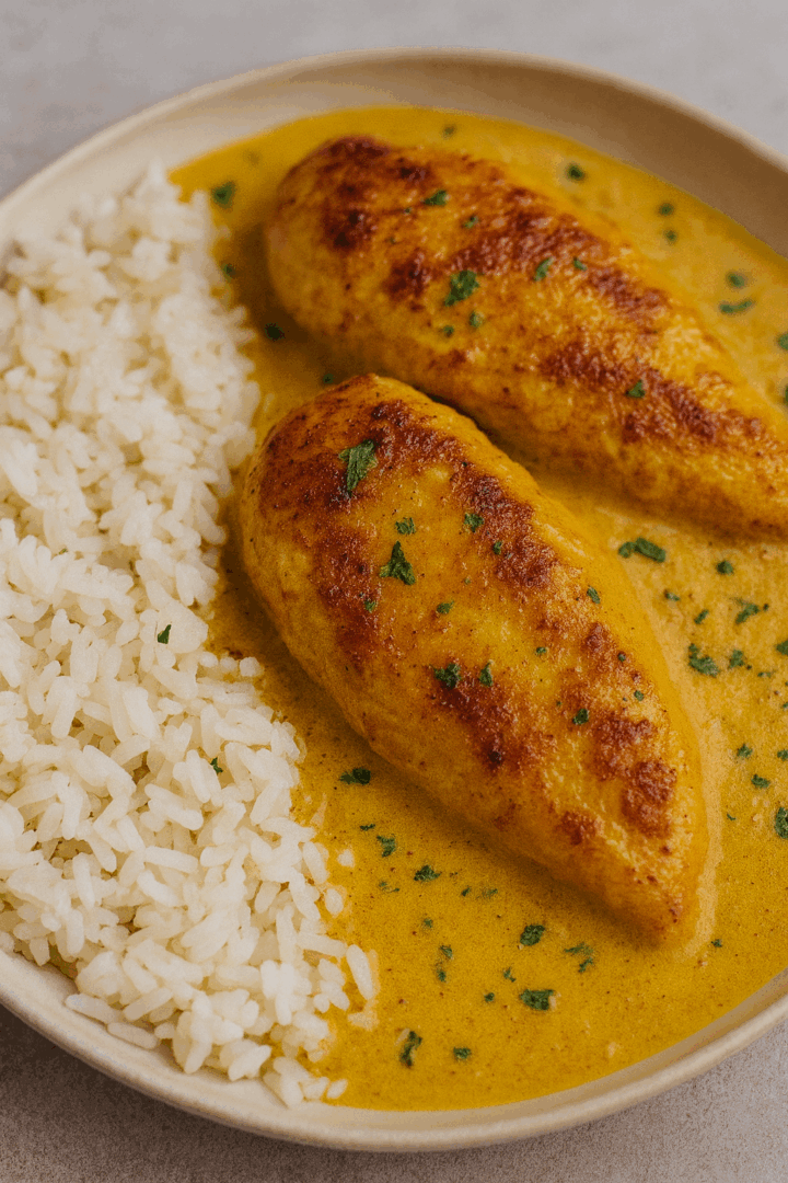 Zamiast kurczaka możesz użyć indyka lub tofu (dla wersji wege). Danie świetnie smakuje również z dodatkiem duszonych warzyw – np. papryki lub cukinii.