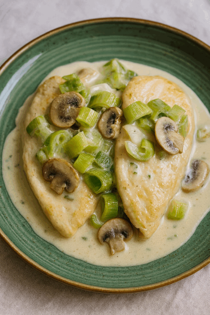 Kurczak w sosie porowo-pieczarkowym