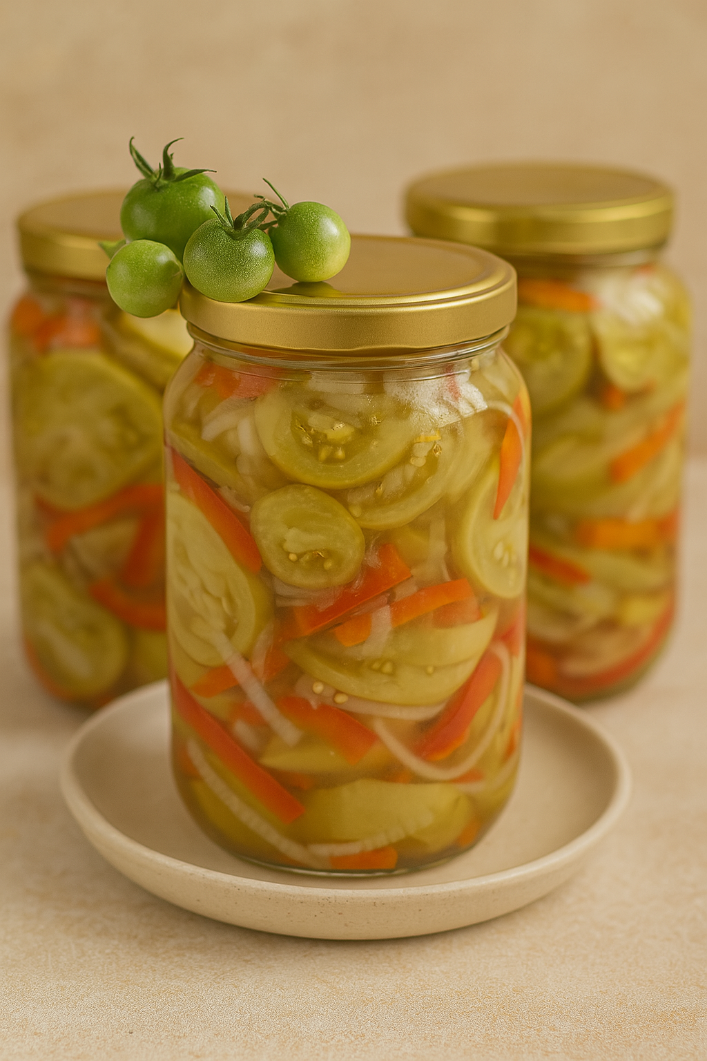 Przepis na sałatkę z zielonych pomidorów z papryką i cebulą