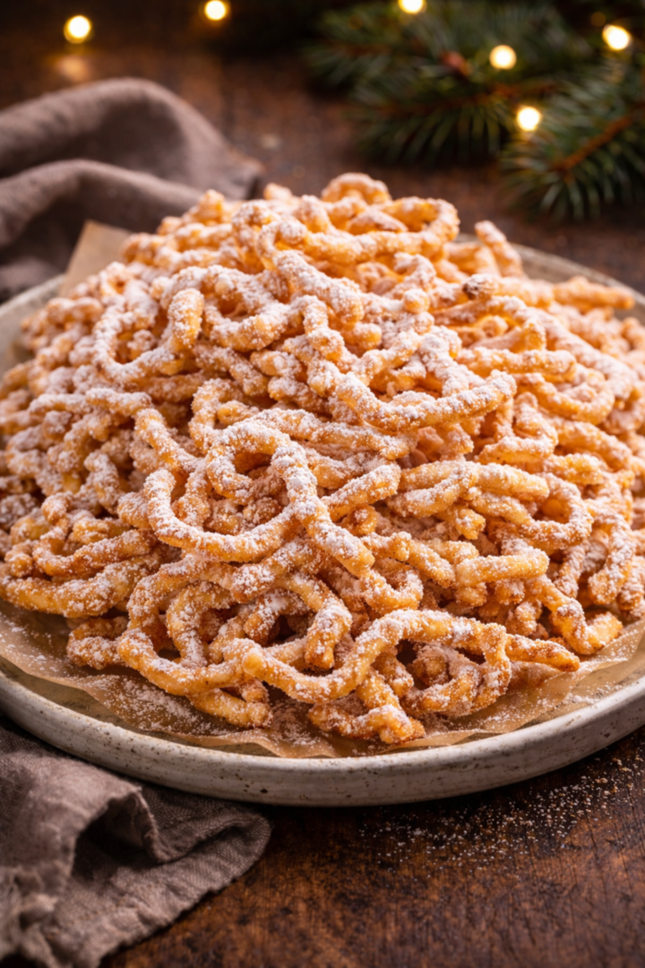 Wlewaj cienką strużką ciasto do gorącego oleju, tworząc „nitki”.