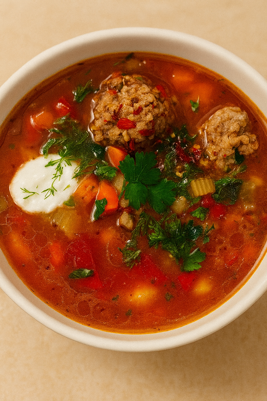 Dodaj podsmażoną kiełbasę, gotuj jeszcze 10–15 minut, aby smaki się połączyły.