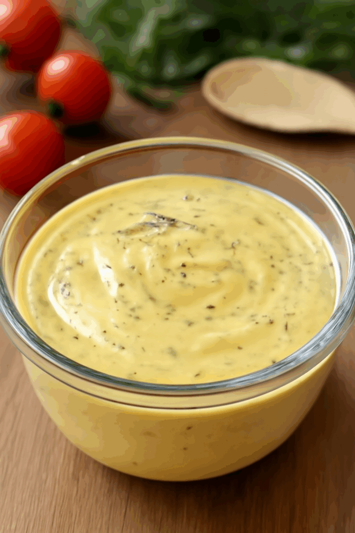 Podawaj sos jako dodatek do sałatek, surowych warzyw, grillowanych mięs lub jako dip do przekąsek.