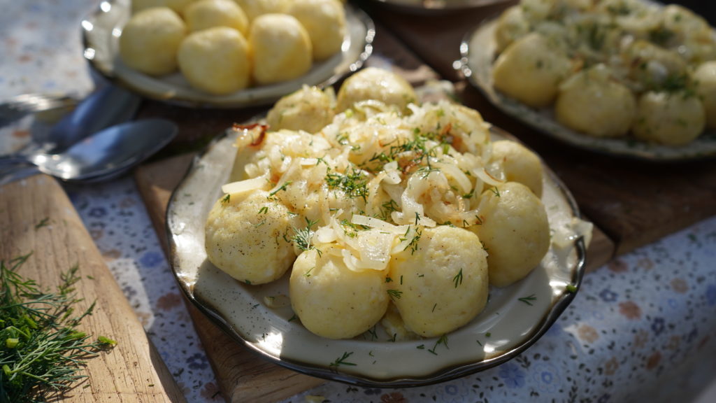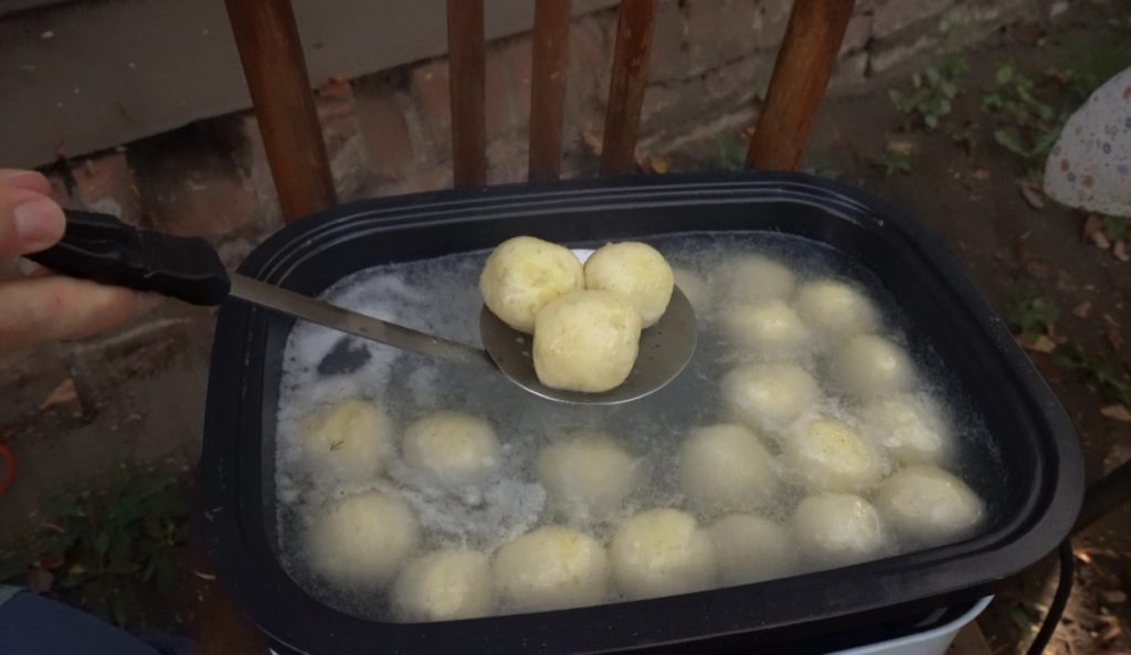 Za pomocą łyżeczki nabieraj porcje ciasta. Twórz małe kulki. Zagotuj wodę. Wrzucaj kulki. Gotuj do momentu wypłynięcia.