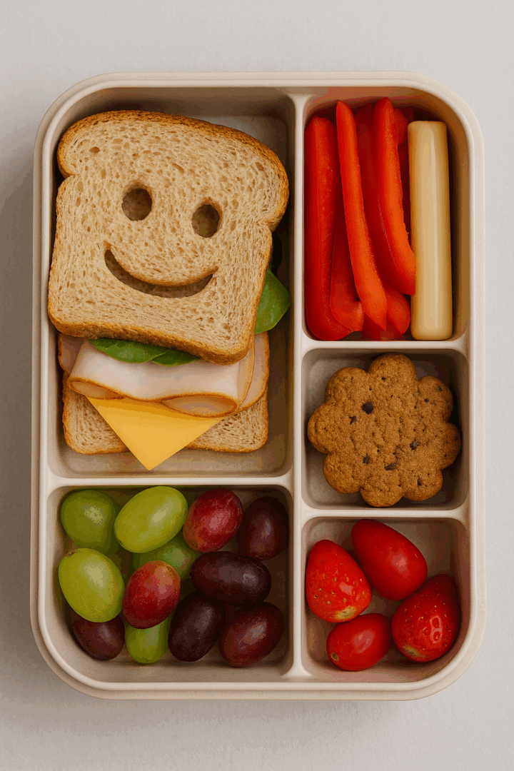 - Kanapka z chlebem tostowym, z górną kromką wyciętą w uśmiechniętą buźkę