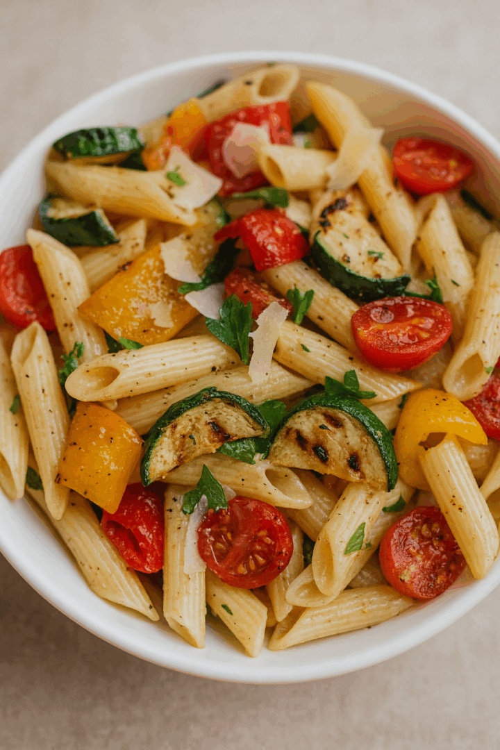 W dużej misce wymieszaj makaron z warzywami, resztą oliwy i ewentualnie odrobiną soku z cytryny.