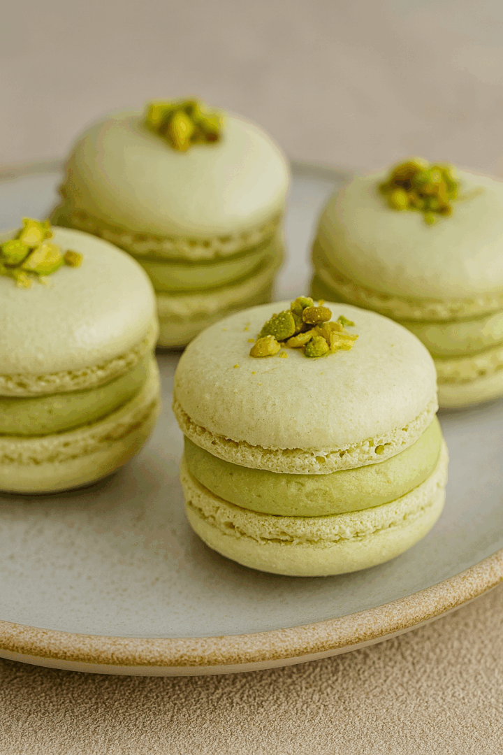 Makaroniki pistacjowe z kremem pistacjowym