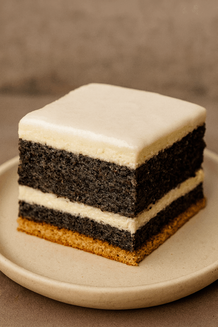Makowiec z kremem budyniowym i lukrem