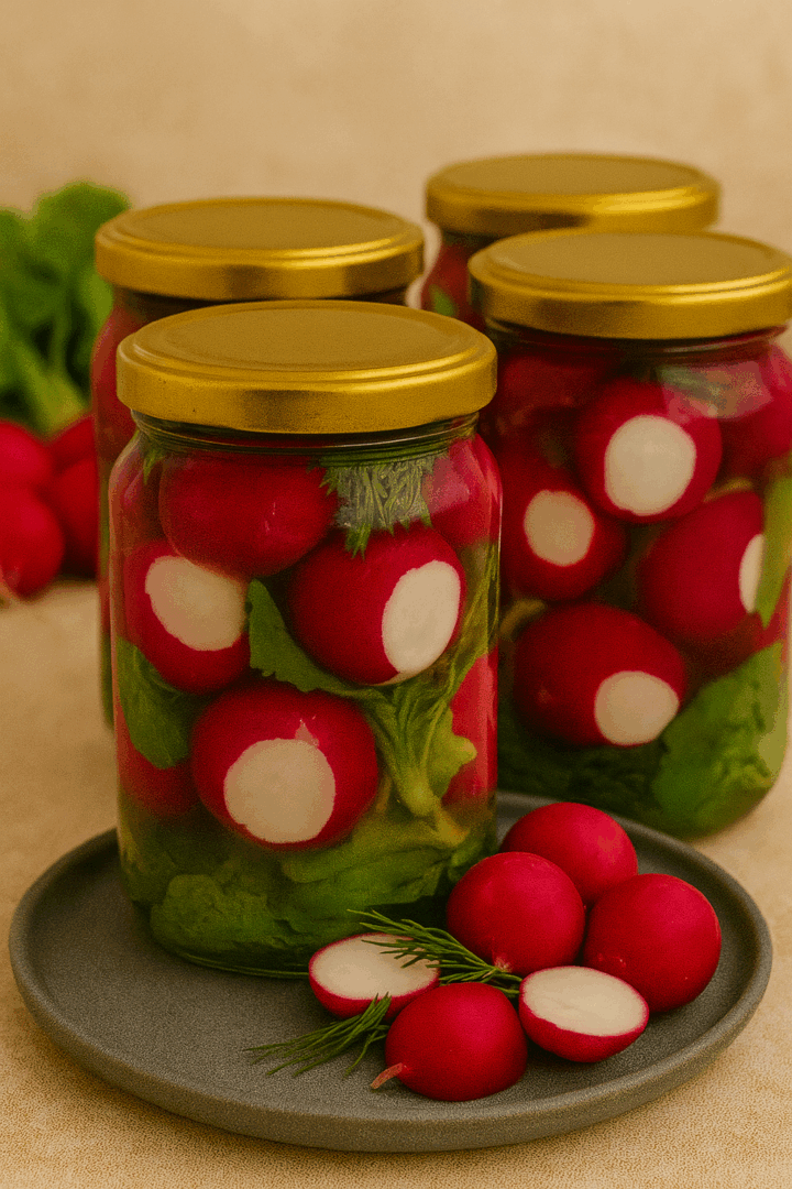 Smak: rzodkiewki są gotowe po kilku dniach, najlepsze po 1–2 tygodniach, gdy zalewa przejdzie aromatem. Podawaj jako chrupiący dodatek do kanapek, wędlin, mięs z grilla lub do sałatek.