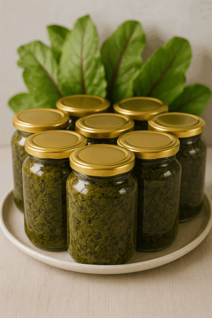 Gdy słoiki będą pełne, upewnij się, że szczaw jest całkowicie przykryty oliwno-octową marynatą.