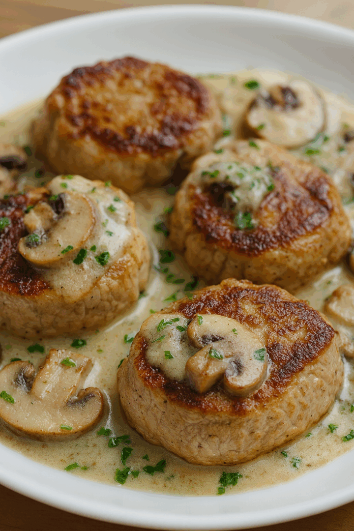 Włóż medaliony z powrotem do sosu, przykryj i duś jeszcze 5 minut, aby mięso było soczyste.
