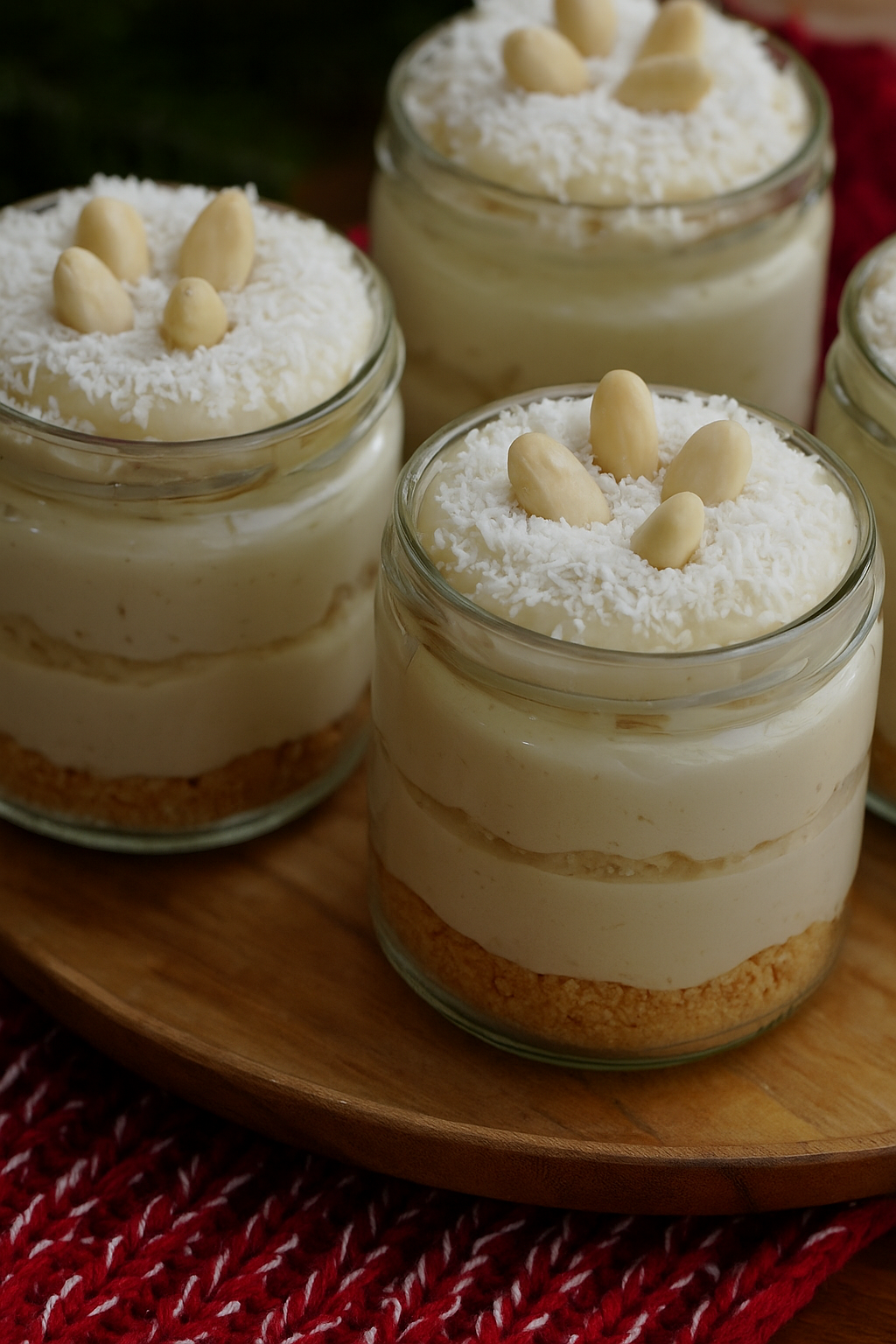Świąteczny deser kokosowy z migdałami w słoiczkach