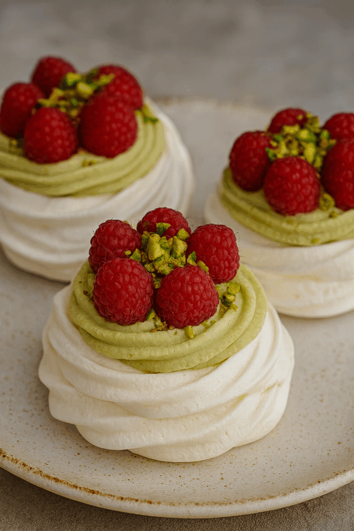 Na każdej bezie wyciśnij okrąg kremu pistacjowego.