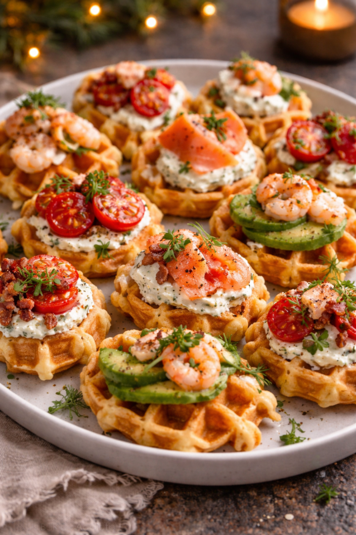 Mini gofry wytrawne z kremem serowym i dodatkami
