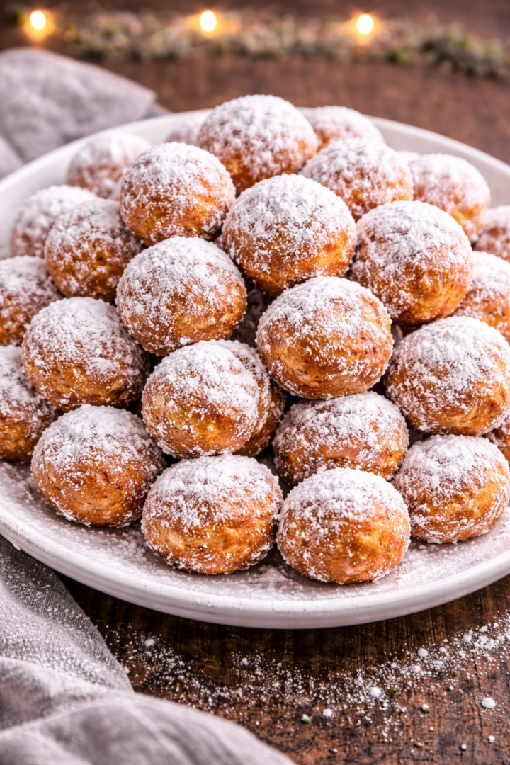 Mini pączki serowe (kulki) oprószone cukrem pudrem