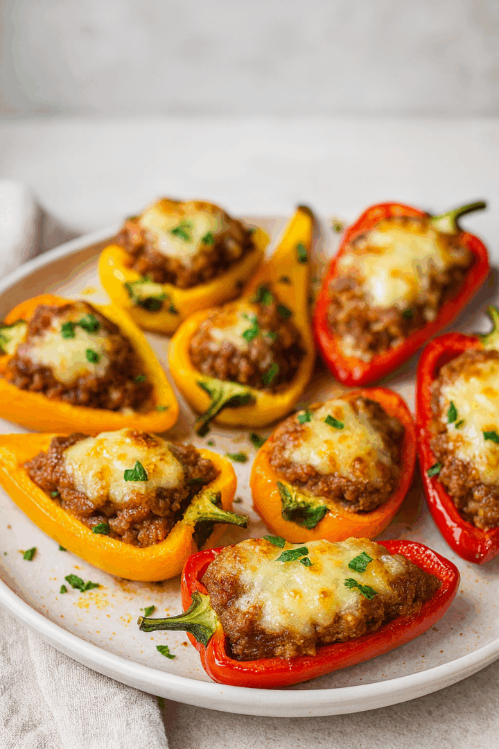 Mini papryki faszerowane mięsem i zapiekane z serem