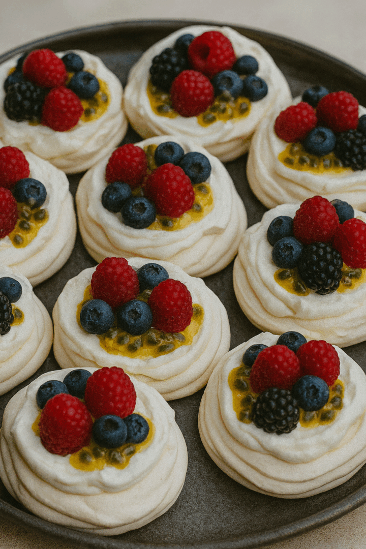 Przełóż pianę do rękawa cukierniczego i wyciśnij okręgi o średnicy ok. 8 cm, tworząc delikatne wgłębienie na środku.