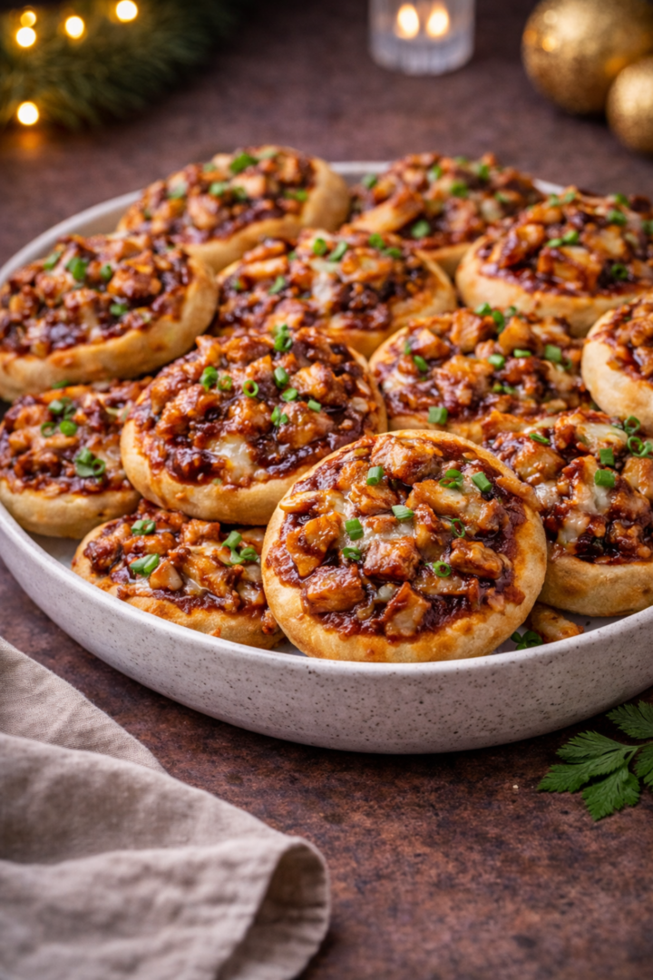 Mini pizze drożdżowe z kurczakiem w sosie barbecue i serem