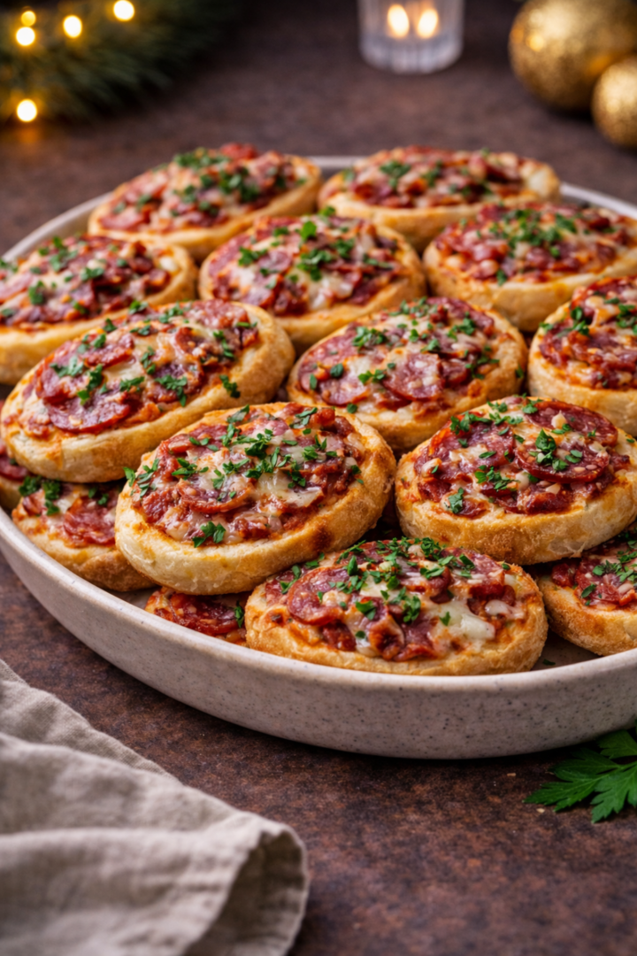 Mini pizze z ciasta francuskiego z salami i serem (ślimaczki)