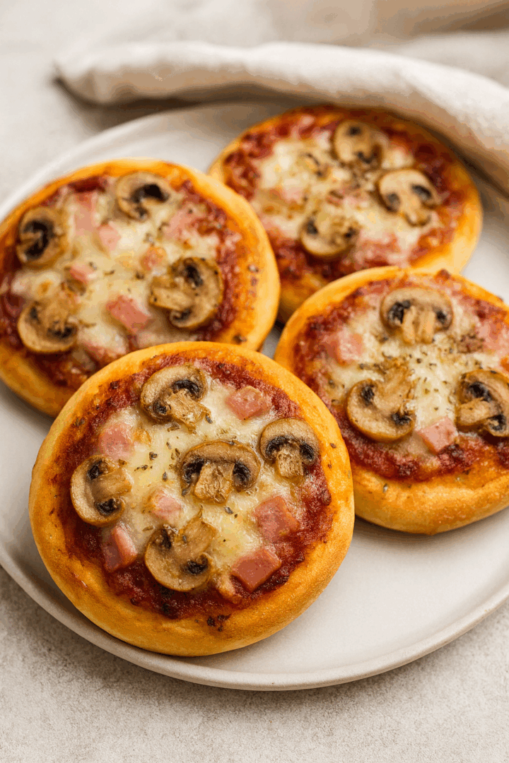 Mini pizzerinki z szynką i pieczarkami