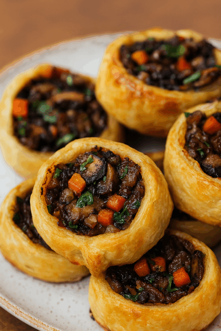 Mini tarty z ciasta francuskiego z pieczarkami i warzywami