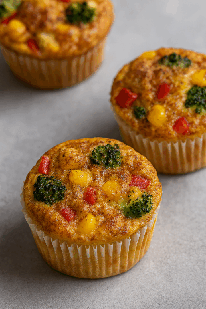 Muffinki jajeczne z brokułem, papryką i kukurydzą