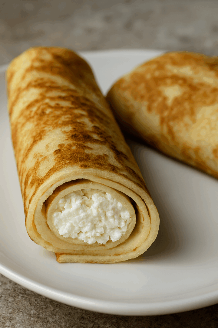 Smaż cienkie naleśniki na dobrze rozgrzanej patelni, po ok. 1 minucie z każdej strony, aż będą lekko złociste.