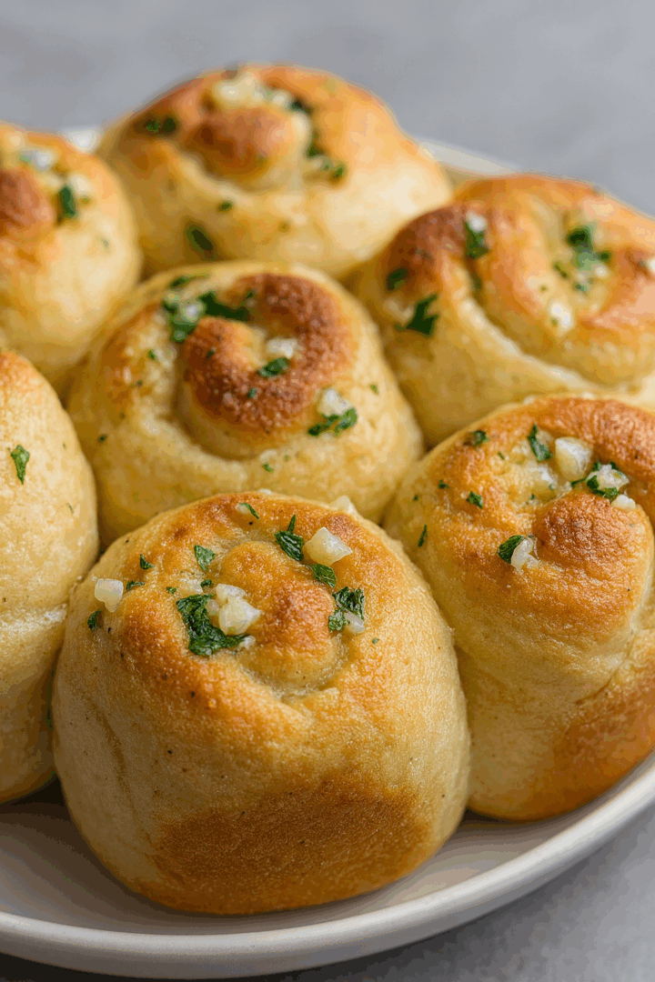 Piecz w piekarniku nagrzanym do 180°C przez 25–30 minut, aż będą złociste. Po wyjęciu możesz jeszcze raz posmarować wierzch resztką masła czosnkowego.