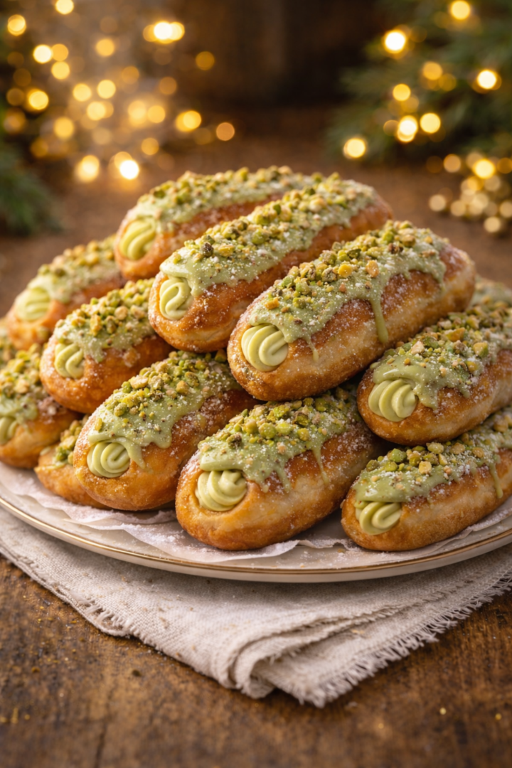 - polewa pistacjowa lub biała czekolada z pastą pistacjową