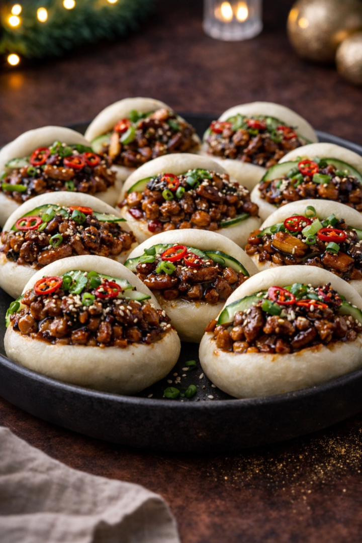 Parowane bułeczki bao z karmelizowanym mięsem w stylu azjatyckim