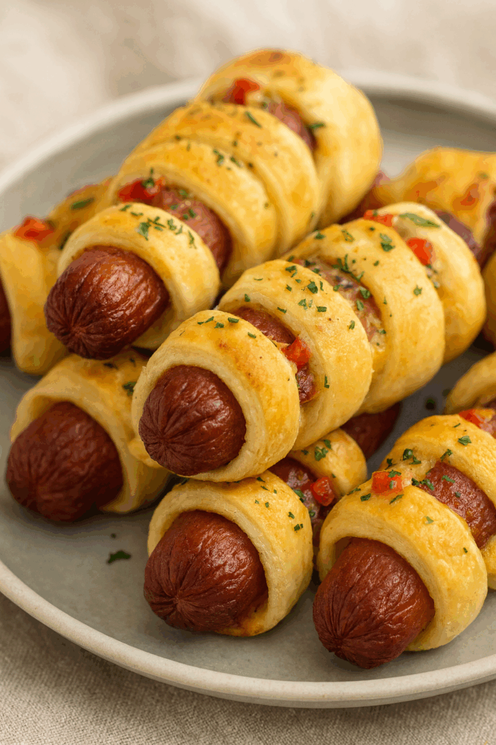 Ułóż zawinięte parówki na blasze z papierem do pieczenia.