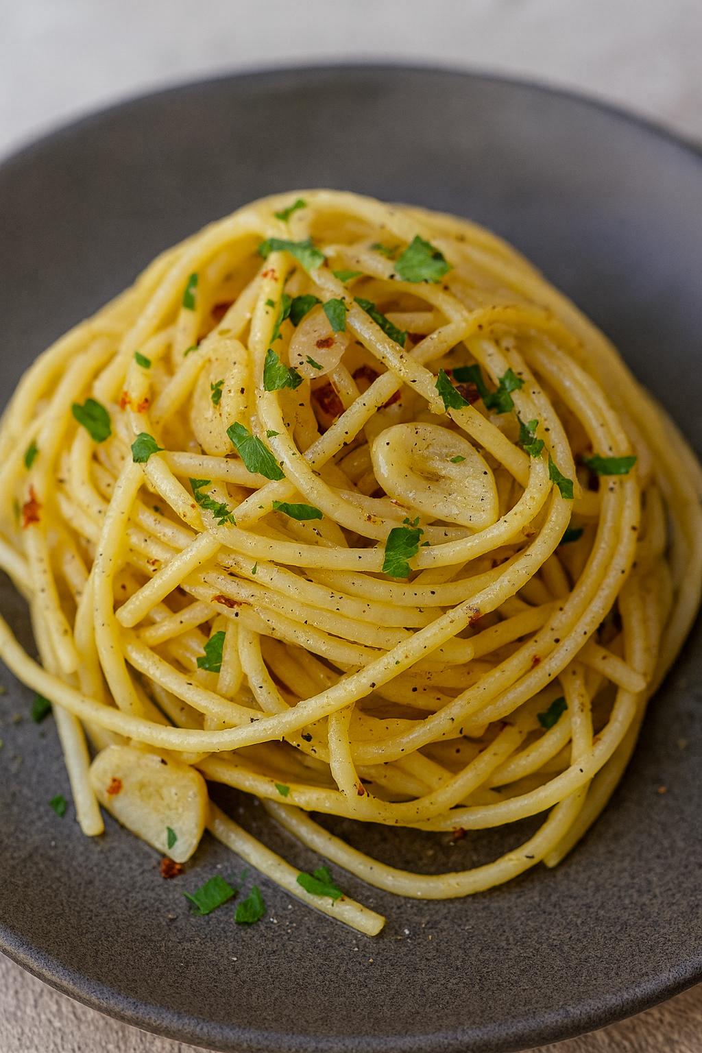 Spaghetti aglio e olio (czosnkowe spaghetti z oliwą i chili)