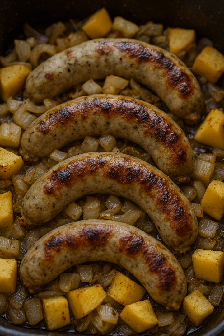 - 4 kiełbasy (np. śląskie, białe parzone lub wiejskie)