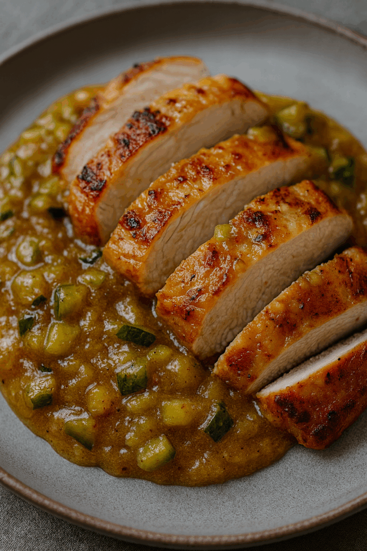 Pieczona pierś z indyka w sosie cukiniowym