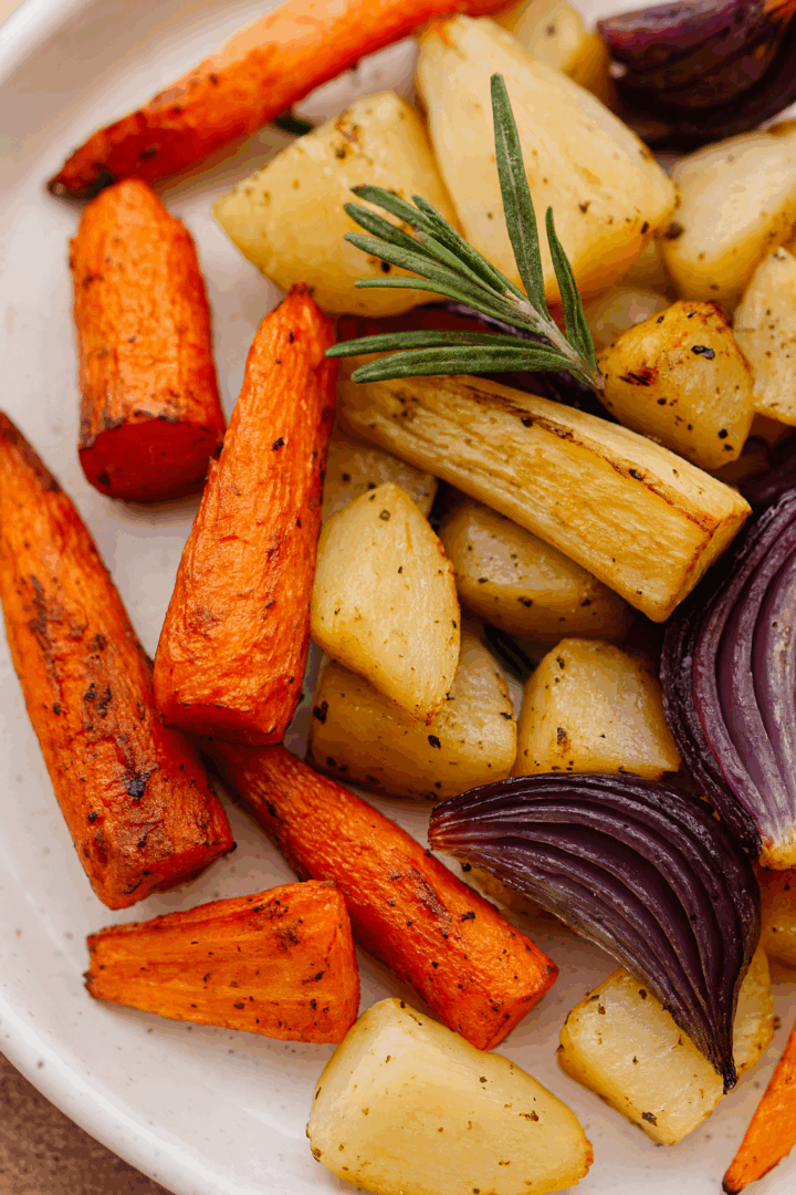 Piecz w temperaturze 200°C (góra-dół) przez 35–45 minut, aż warzywa będą miękkie i lekko przyrumienione.