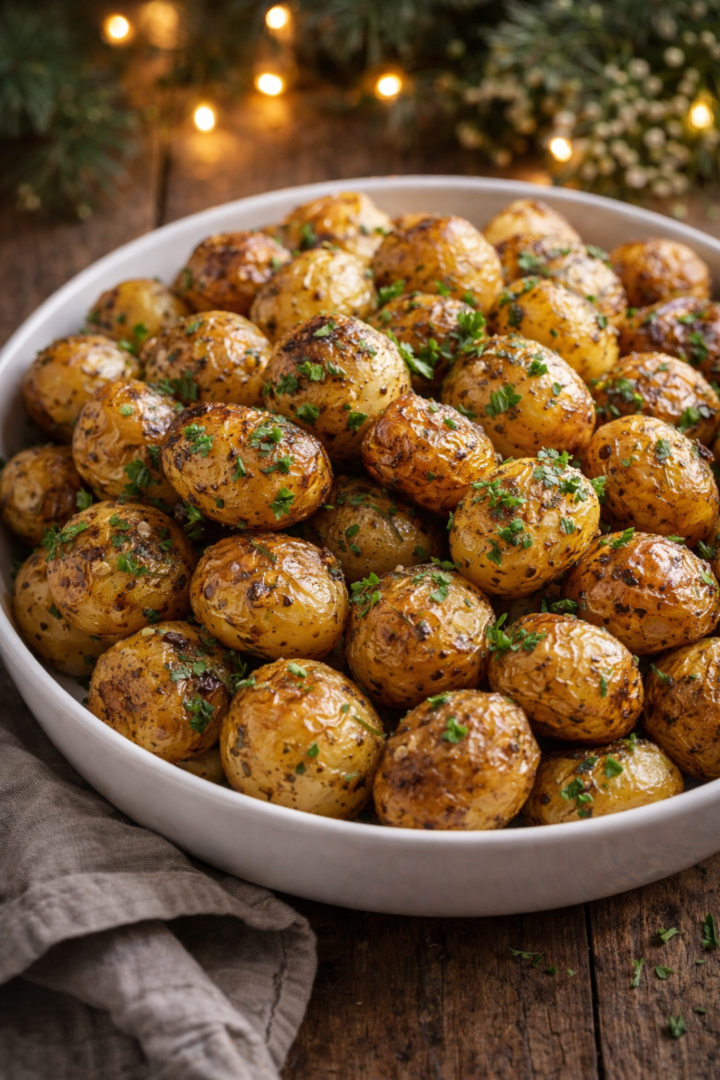 Wyłóż blachę papierem do pieczenia i rozłóż ziemniaki w jednej warstwie.