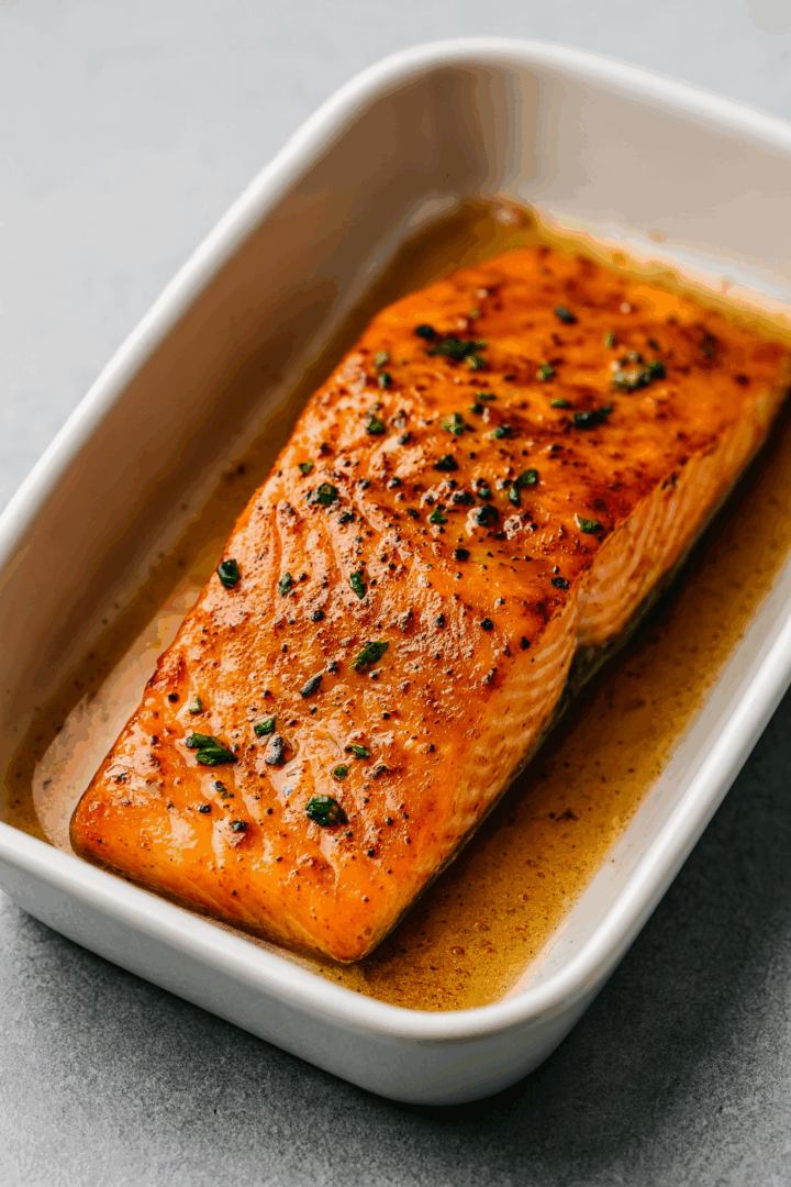 Podawać z ryżem, pieczonymi ziemniakami lub warzywami na parze. ✨ Porada: Jeśli wolisz wersję z patelni – łososia można podsmażyć na masełku po 3–4 minuty z każdej strony, a potem polać sosem z cytryny i masła