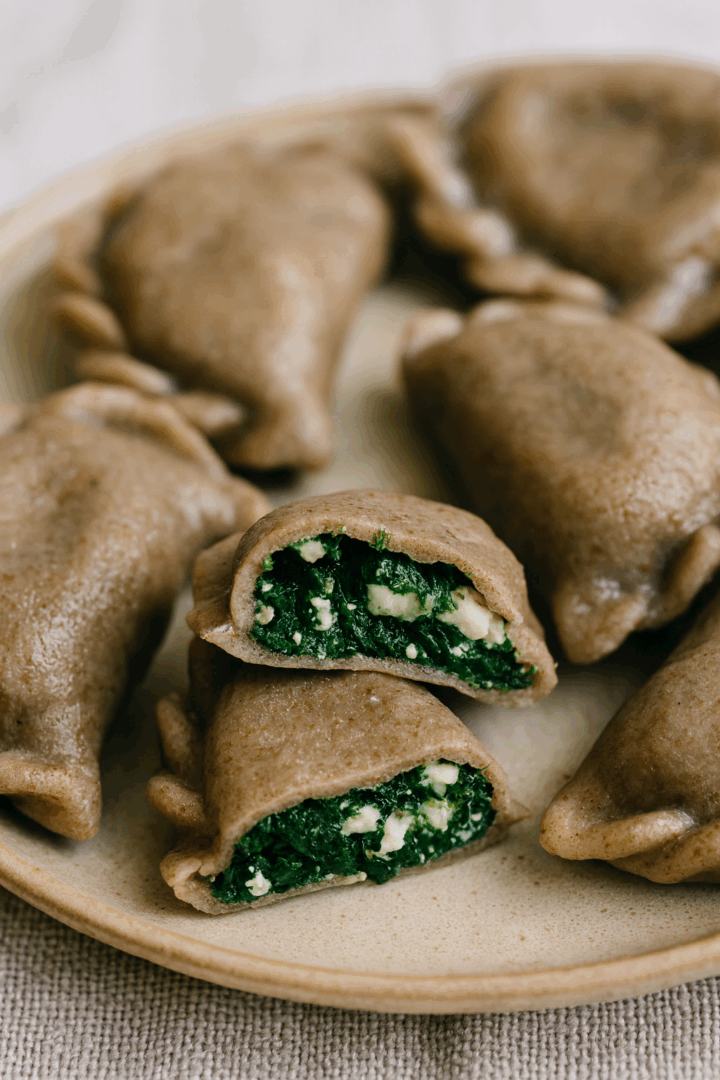 Pierogi pełnoziarniste ze szpinakiem i serem