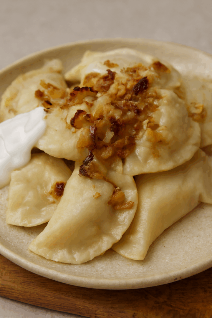 Wrzucaj pierogi partiami, gotuj 2–3 minuty od momentu wypłynięcia.
