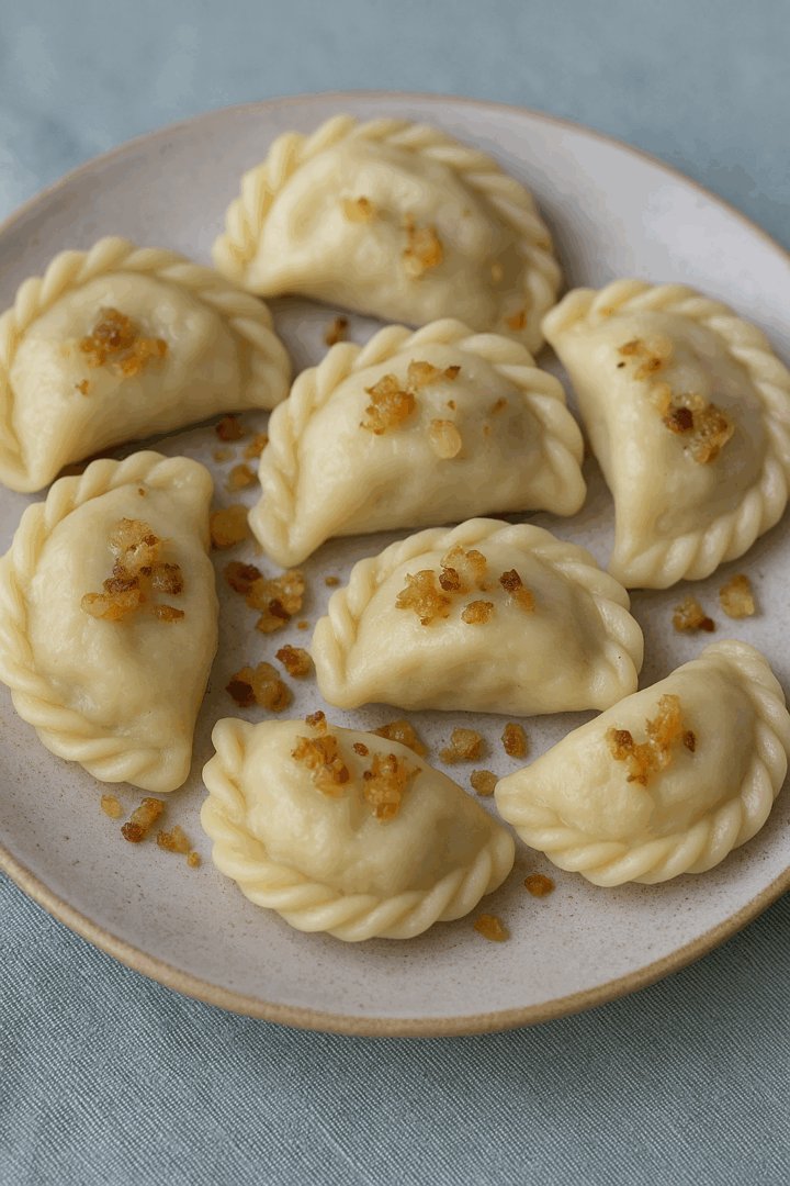 Wrzucaj pierogi partiami i gotuj 2–3 minuty od momentu wypłynięcia na powierzchnię.
