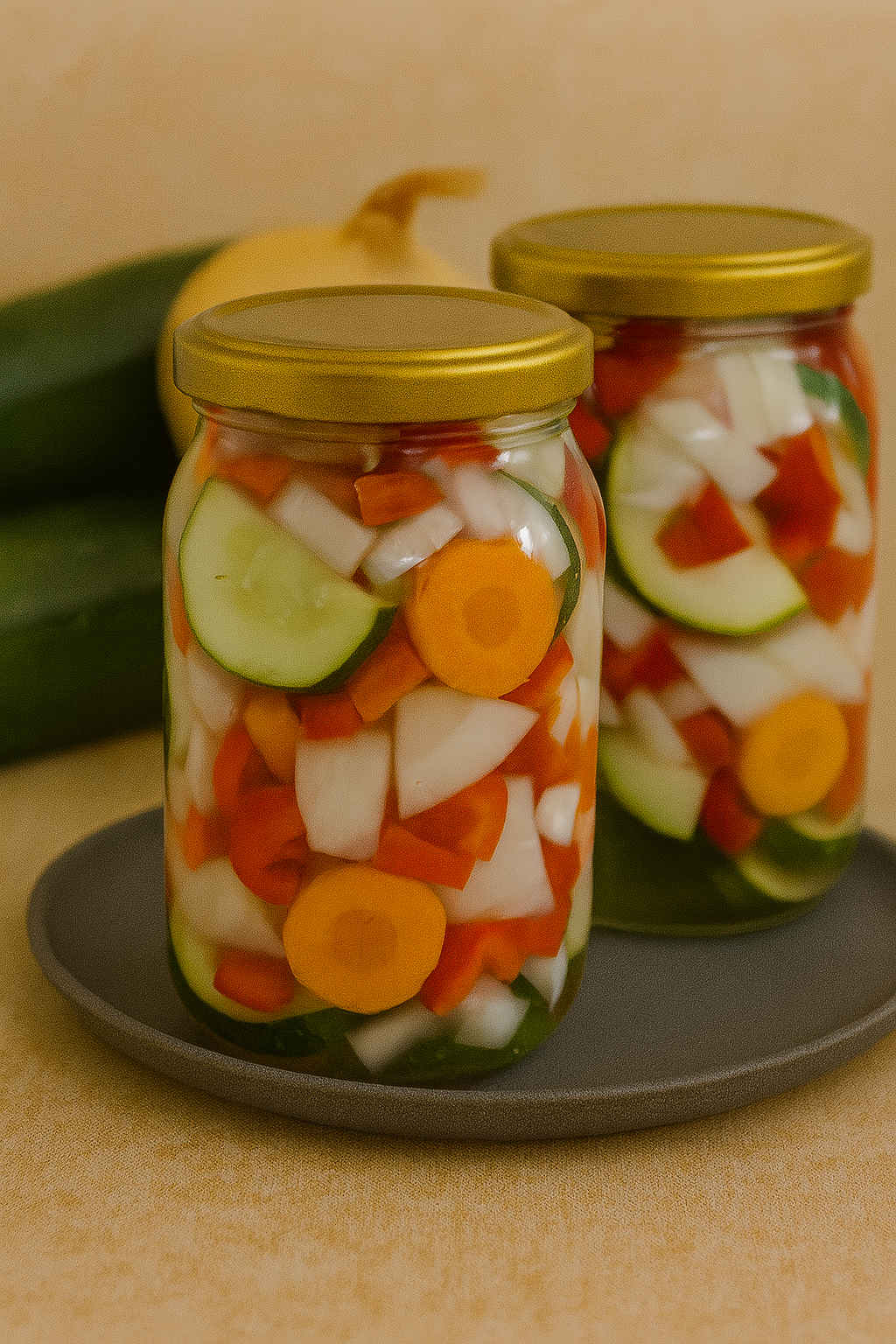 Marynowana mieszanka warzyw na zimę (cukinia, marchew, cebula, papryka)