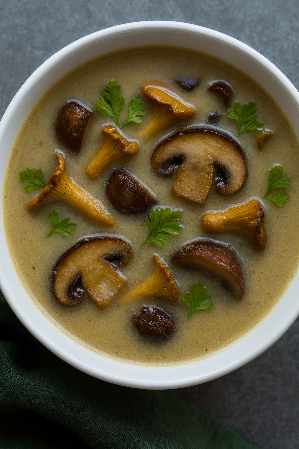 Grzyby odcedzić, zachowując wodę z moczenia.