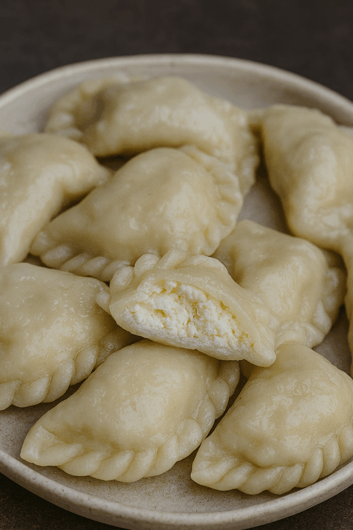 Wrzucaj pierogi partiami, gotuj 2–3 minuty od wypłynięcia na powierzchnię.