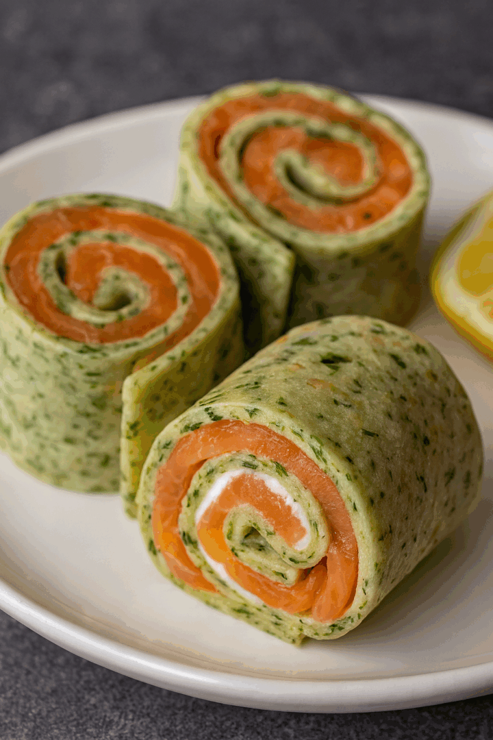 Pietruszkowe naleśniki z wędzonym łososiem, serkiem i cytryną