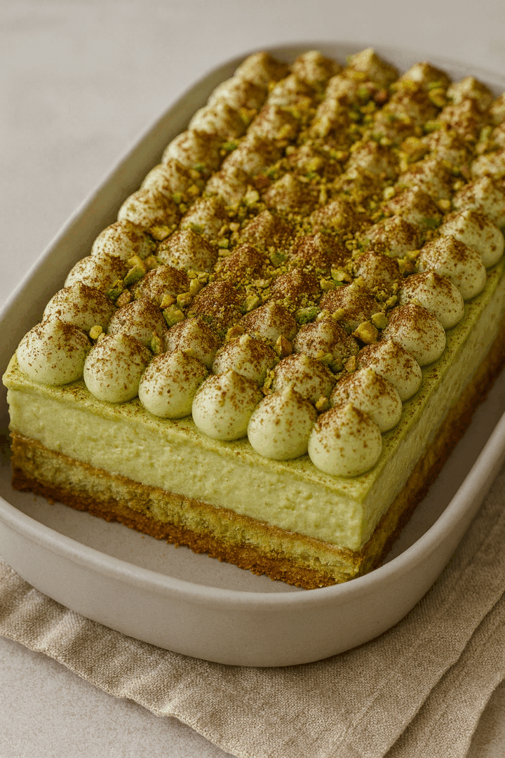 Podawaj dobrze schłodzone – deser jest delikatny, kremowy i ma wyjątkowy pistacjowy smak, który zachwyci każdego miłośnika włoskich deserów 💚