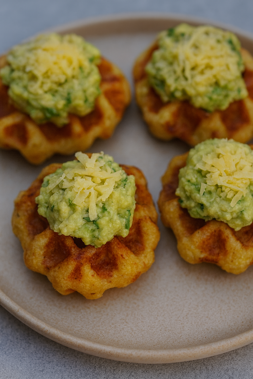 Mini gofry serowe z pastą z awokado