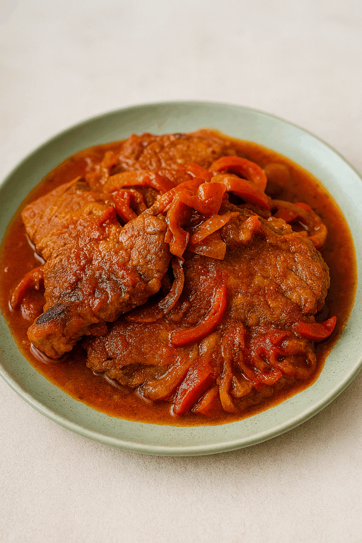 Przepis na duszoną wieprzowinę z papryką i cebulą