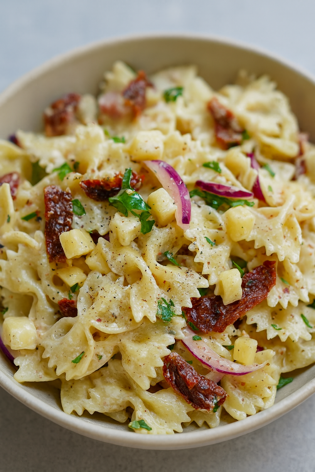 - Dodatki: Świetnym uzupełnieniem są pokrojone suszone pomidory, pokruszone jajko na twardo czy kapary dla wyrazistego smaku.