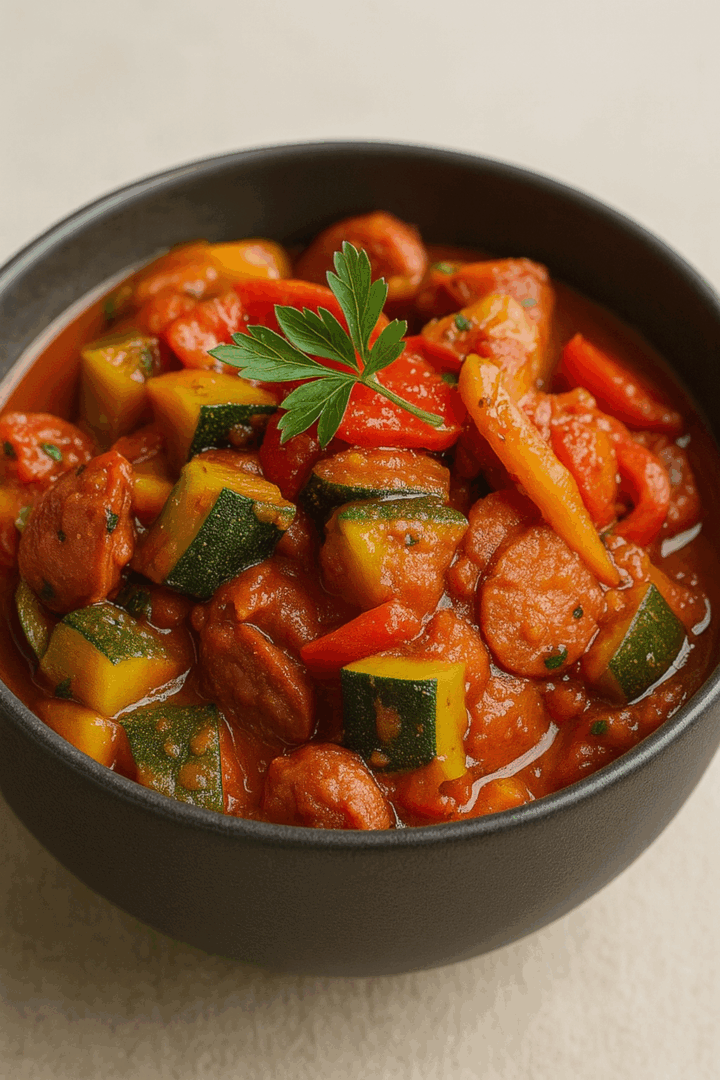 : Jeśli leczo jest za gęste, możesz dodać odrobinę wody lub bulionu. Na koniec, tuż przed podaniem, posyp danie świeżą natką pietruszki.