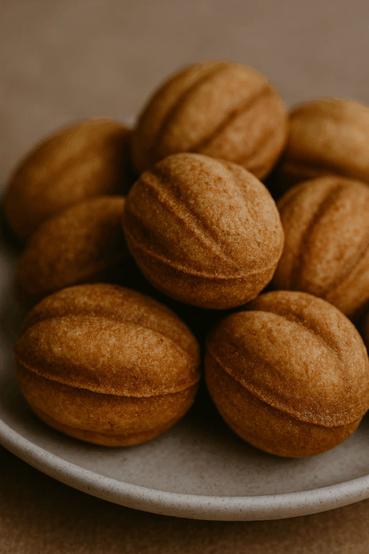Formuj kulki wielkości orzecha włoskiego i umieszczaj w rozgrzanej formie do orzeszków (patelni lub specjalnej elektrycznej).